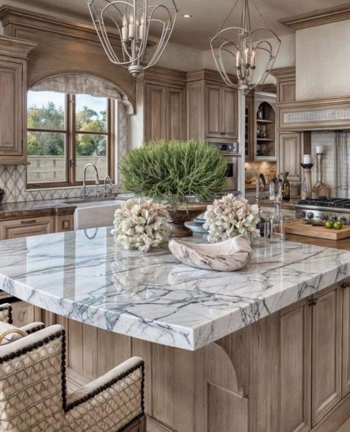 One of the home’s most striking original features—the soaring 20-foot brick fireplace—was preserved but thoughtfully enhanced. We enlarged its footprint and resurfaced it with limestone, carrying the same stone to the home’s exterior for a cohesive, elevated look. To further boost curb appeal, we added a circular driveway, complementing the home’s timeless charm.